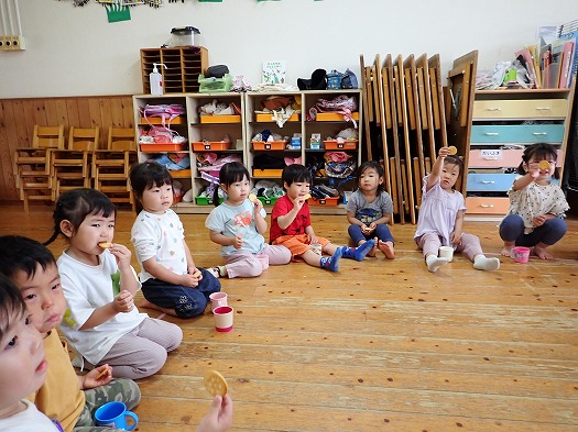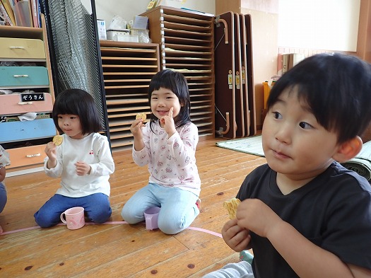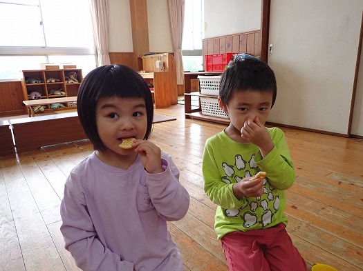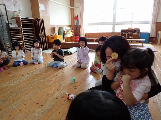 みんなでご褒美に朝の集まり前にクッキーを食べました。