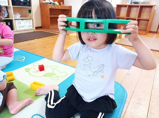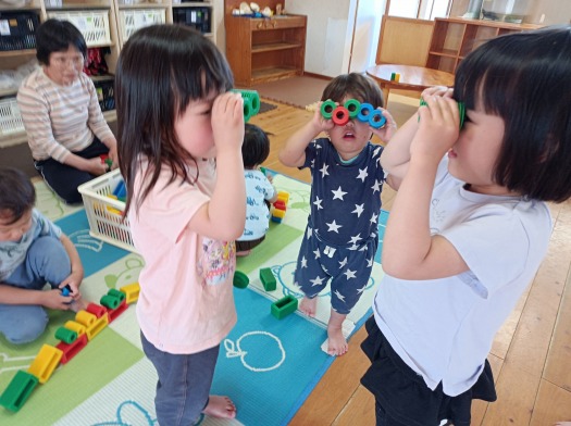 ブロックで一人の子がメガネを作ると、次々に