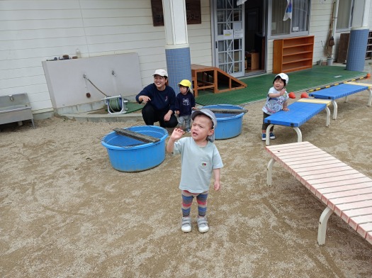 他のクラスがいない広い園庭を独り占めできのびのびと戸外あそびを楽しみました。