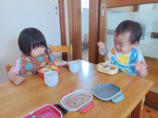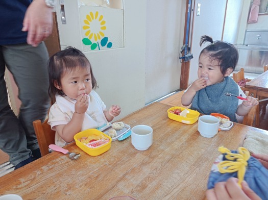 外でめいっぱい遊んだ後は、お楽しみのお弁当タイム!