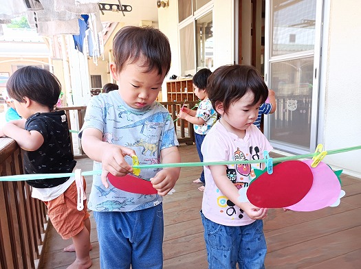 2025年05月23日 いちご狩り 2歳児 にじ 以前作ったいちごでいちご狩りを楽しみました。 自分のマークがついているいちごを取ることを伝えると、自分のマークを探して収穫できていました。 収穫したいちごをぱくり! クラスにも掲示するので見てくださいね。 一覧へ戻る