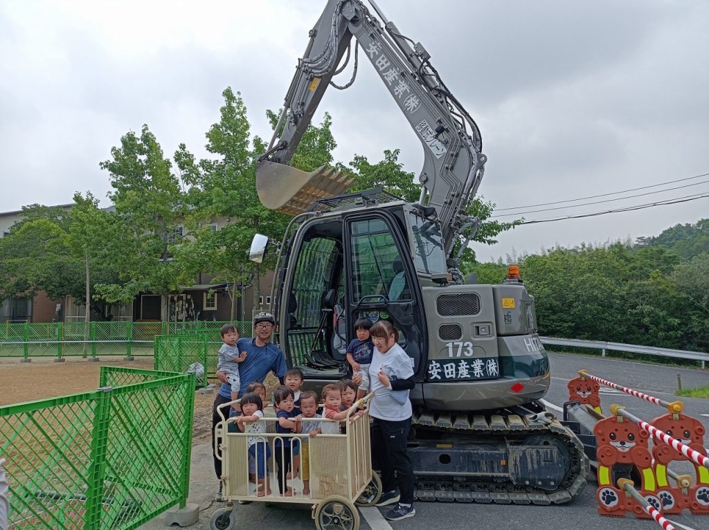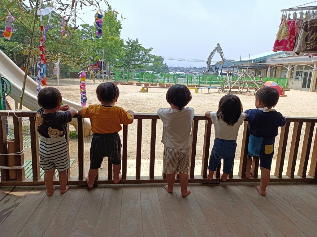 2025年07月08日 うわー おおきい! 1歳児 ゆき 支援センターの解体工事が始まってから、重機が動く姿に釘付けになっているこどもたち。先日、支援センターの解体工事が終了し、ショベルカーが帰る日に、一緒に写真を撮らせてもらいました。 間近にあるショベルカー。目を離さず、真剣な表情で見つめるこどもたちでした。 最後、トラックにのせて帰るところもテラスから見れました。「バイバイ~」と見えなくなるまで、手を振っていたこどもたちです。 一覧へ戻る
