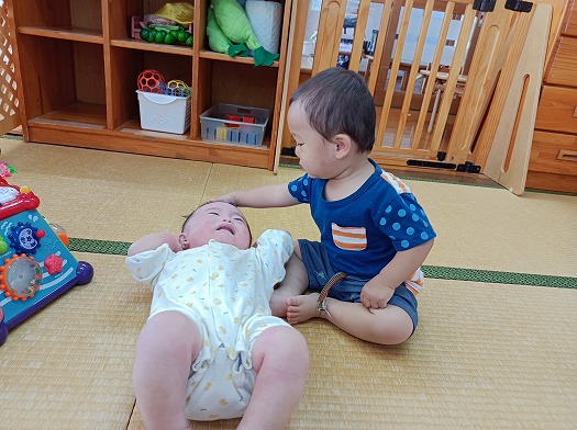 友だちが泣いていると側に行き、頭を撫でながら 「ぉし~し~」と 言っており、きっと「よしよし」と言っているんだろうなとそんな可愛い姿にほっこりしました。