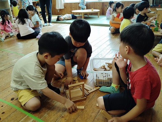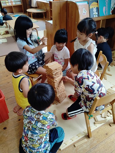 はじめは上手く積み重ねることができなかったこどもたちですが、今では…