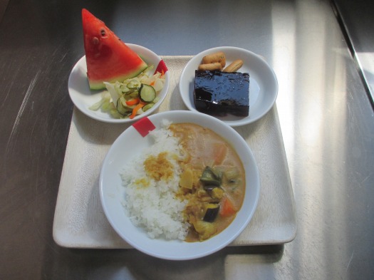 今日のカレーは、夏野菜の”ピーマン””なすび””かぼちゃ”が入っていました。