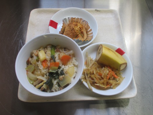 2025年09月02日 給食室(8月28日の給食、おやつ) 給食室 昼食 ・中華丼 ・カミカミサラダ ・バナナ おやつ ・おからと紅茶のマフィン ・牛乳 『中華丼』は、”えび”や”いか”が入ることで、 しっかりと嚙んで食べていました。。 『カミカミサラダ』は”ごぼう”が入ることでかみかみになっています。 今日もよく食べていました。 一覧へ戻る
