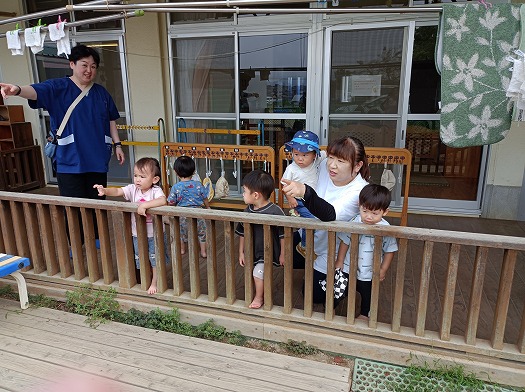 「あ!ブーブー!」と興奮気味に指差すこどもたち。