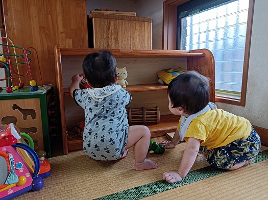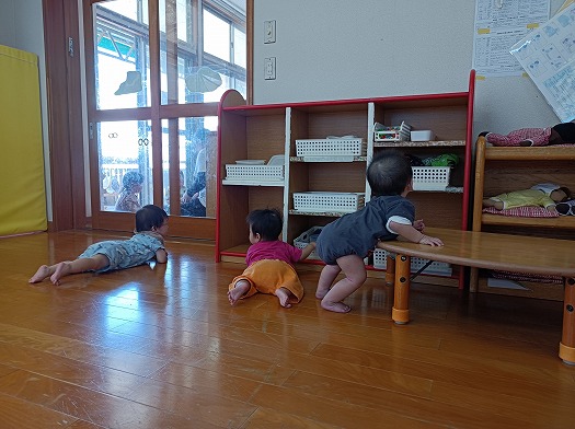 自分で移動するのが楽しくて、行きたいところに自由に行き、探索活動を楽しんでいるこどもたち。