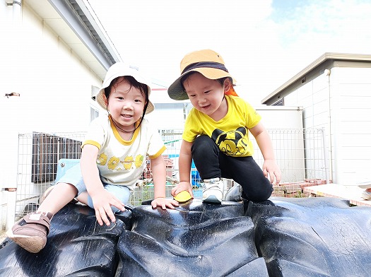 2025年10月01日 登ったぞ~! 2歳児 にじ 畑の前に大きなタイヤがあります。 タイヤのへこんだ所に足を引っかけて器用に登っていました。 登った後は清々しい表情を見せていたこどもたち。 タイヤから降りる時の滑り台も楽しかったようで何度も登って、降りてを繰り返していました。 久しぶりの戸外あそび、楽しかったね! 一覧へ戻る