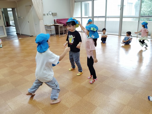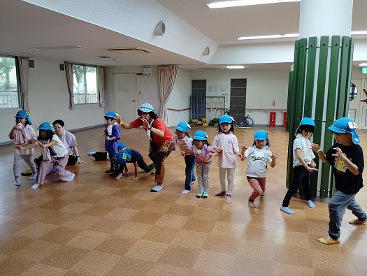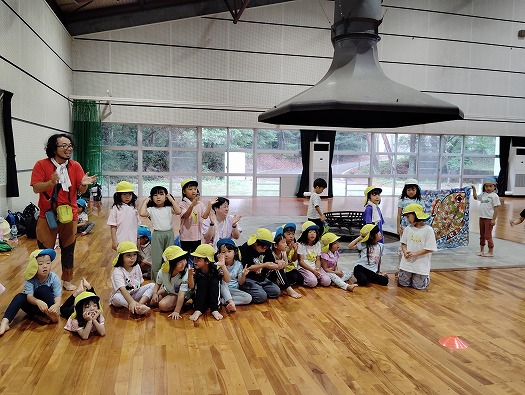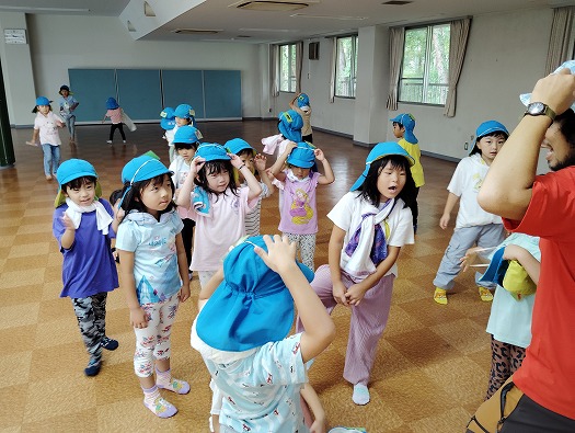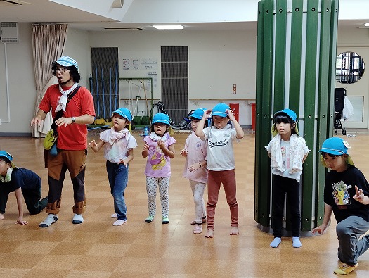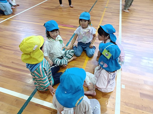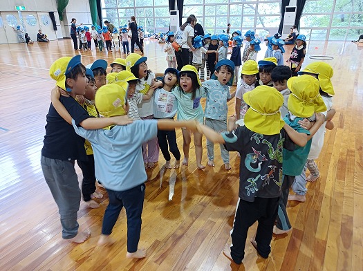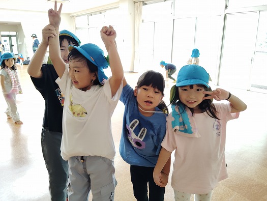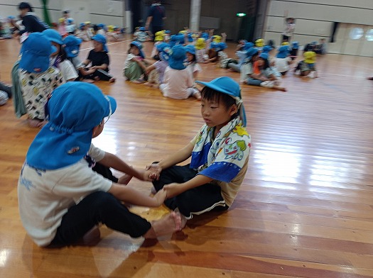 2025年10月03日 そらキャンプ 二日目(帽子取り鬼の巻) 5歳児 そら こどもたちとの合い言葉は、がぶがぶ ※がぶがぶは、自分で判断をする、積極的 の造語です笑 運動会で使っていた大漁旗を持参していたので、それを振りながら、全力で「がんばれ」と応援していました 一覧へ戻る