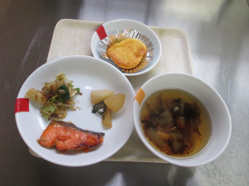 2025年10月08日 給食室(10月8日の給食、おやつ) 給食室 昼食 ・ごはん ・鮭のちゃんちゃん焼き ・大根の煮付け ・キャベツのおかか和え ・のりのすまし汁 おやつ ・チーズケーキ ・牛乳 今日の人気メニューは、 『鮭のちゃんちゃん焼き』でした。 美肌の効果も期待できる鮭! ビタミンCの野菜といっしょにとるといいようなので、 ちゃんちゃん焼きに人参、玉ねぎ、キャベツなどいろいろな野菜を加えて作ってみてはいかがでしょうか。 一覧へ戻る