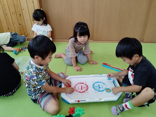 保育園にはない玩具に、「あれ、やりたい!」「これ、一緒にやろう!」と友だちを誘って夢中で遊んでいました。