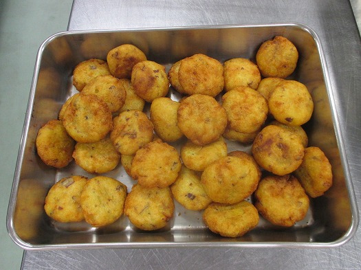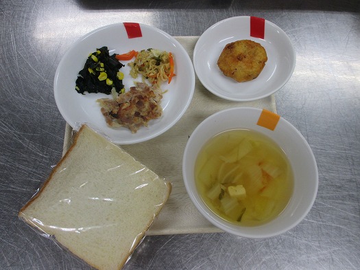 2025年10月17日 給食室(10月14日の給食、おやつ) 給食室 昼食 ・食パン ・豚肉のマーマレード焼き ・わかめとコーンのソテー ・切り干しサラダ ・ごぼうスープ おやつ ・さつまいもの揚げ饅頭 洋食メニューはやっぱり人気のようです。 あっという間になくなりました。 おやつの『さつまいもの揚げ饅頭』は、 今が旬の”さつまいも”をたくさんつかいました。 さつまいも以外に材料は米粉と砂糖なので簡単ですよ。 出来上がりはこんな感じです。😊 一覧へ戻る