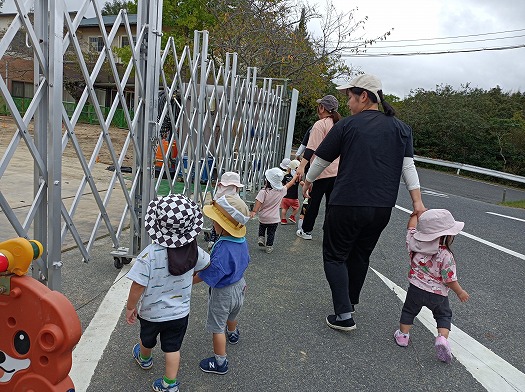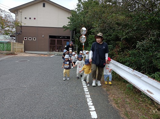 道中に落ちているどんぐりを見つけたり、車に手を振ったり、楽しみながら散歩することができました。