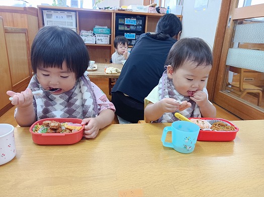 楽しみにしていた昼食。「お弁当」と嬉しそうに食べていました。