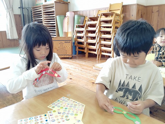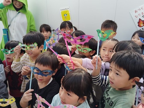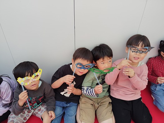 2025年11月04日 トリックオアトリート🎃 4歳児 ほし 丘っこストリートで行われたハロウィンパレード🎃 ほし組の仮装は… 個性豊かなハロウィンメガネです! シールやクレヨンで好きなように彩りました。 モデルのように丘っこストリートを歩きました☆ トッリクオアトリート🎃お菓子も貰えてうれしそうなこどもたちでした! 一覧へ戻る