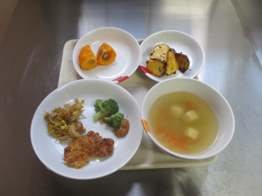 2025年11月12日 ≪11月11日の給食、おやつ≫ 給食室 昼食 ・食パン ・ピカタ ・大豆もやしとちくわのソテー ・ブロッコリーの甘酒ディップ ・もち麦入りスープ おやつ ・大学芋 ・牛乳 今日は、洋食メニュー! よく食べていました。 おやつの『大学芋』は、今が旬のさつま芋をたくさん使用しています。 油で揚げて 回転鍋で蜜と和えました。 完食です。😊 一覧へ戻る