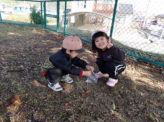 2025年11月18日 にじ組さんと 3歳児 つき にじ組さんとどんぐり公園に散歩に行ってきました。 みんなお兄ちゃん、お姉ちゃんっぷりを発揮していました☆ 一緒に遊具やどんぐり集めなどを楽しみました。 また一緒にどこか行こうね。 一覧へ戻る