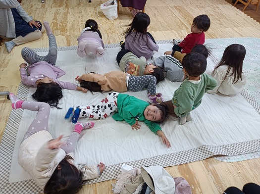 2025年11月18日 読み聞かせ 2歳児 にじ くちぶえの家に絵本の読み聞かせを見に行きました。 絵本に出てくる動物の真似っこをしてみようということに! 両手でピースをしてカニの真似をしたり、ジャンプをしてうさぎやカンガルーの真似をしたりとても大興奮でした! 一覧へ戻る