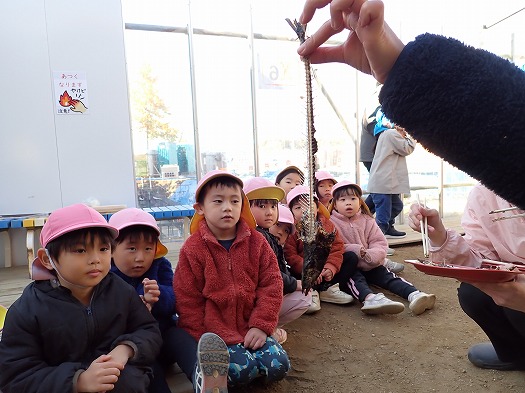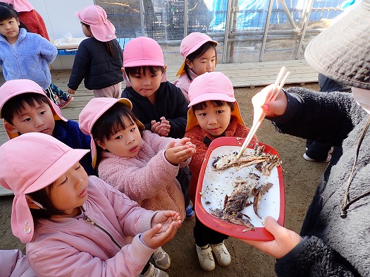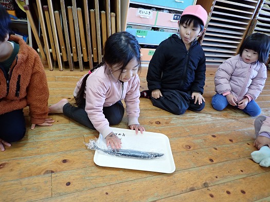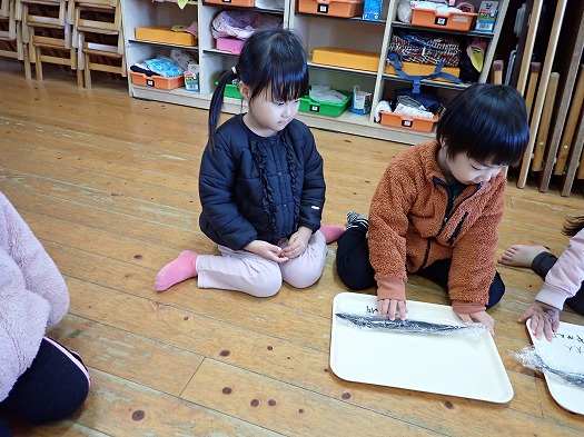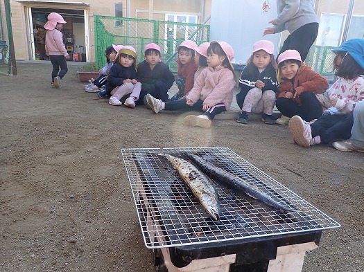 2025年11月25日 さんま 3歳児 つき さんまキャラバンに参加しました。 さんまの話を給食室の職員から聞き、生のさんまに触れました。 焼けるまで…わくわく♡ 焼ける間、そら組さんが作った干し柿を頬張りながら待ちました。 焼けた焼けた♡ 出来立てを少し味見。 おいしかったね♪おかわりコールが止みませんでした。 一覧へ戻る