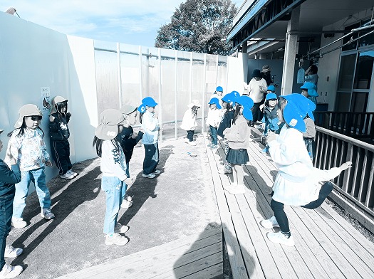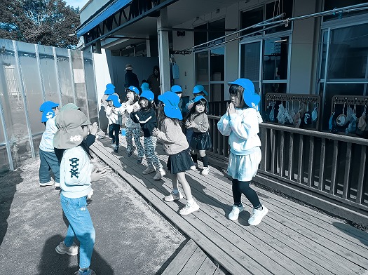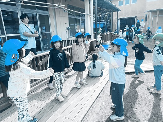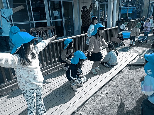 2025年11月15日 しやすい を 動きやすいに! 5歳児 そら 朝は、身体が固まって転倒しやすい、怪我をしやすい それを防止するために 身体を動かそう あえて、青色を多めの写真です 朝から身体を動かして遊ぼう 一覧へ戻る