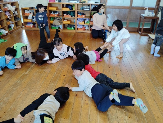 2025年11月25日 ぬくぞー! 4歳児 ほし 今日は室内で久しぶりに大根抜きをしました。 やる気満々のこどもたち。 「がんばれー」「まけないぞー」 抜く方も抜かれる方も声を掛け合いながら頑張ります。 3戦しましたが、大根のこどもたちの力に及ばすでした。 こどもたちの団結力素敵です☆ 一覧へ戻る