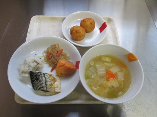 2025年12月05日 ≪12月3日の給食、おやつ≫ 給食室 昼食 ・ごはん ・鯖の塩焼き ・しらたきの炒め物 ・大根とゆかりのポテトサラダ ・白菜のみそ汁 おやつ ・おからドーナツ ・牛乳 今日は、旬の食材、2品使いました。 一つ目は、”だいこん” 『大根とゆかりのポテトサラダ』で、 新メニューでした。 マヨネーズの味付けのポテトサラダにゆかりごはんの素を入れ、 きゅうりではなく、大根が入りました。 大根の食感、ゆかりの塩味がよくあっていて、 美味しかったです。 旬の食材、2品目は、”白菜” 今日は、みそ汁に入りました。 一覧へ戻る