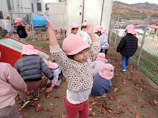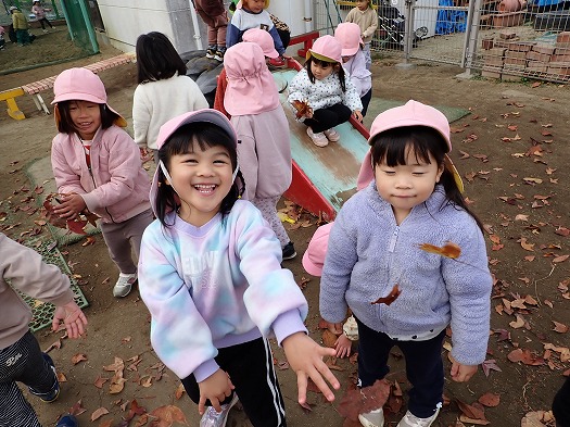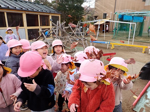 落ち葉投げ合いっこをしたり