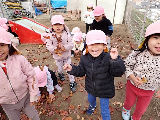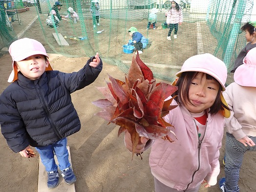 集めた落ち葉であそびました。