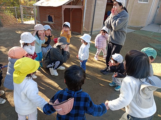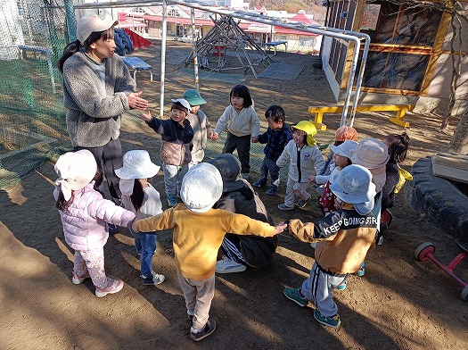 2025年12月20日 むっくりくまさん 2歳児 にじ 久しぶりにむっくりくまさんをしました。 手つなぎあそびがとても楽しくなってきたようで、むっくりくまさんのうたも上手に歌えるこどもたち。 くまさんがお腹いっぱいになるまでたくさん走っていました。 「くまさん、こっちだよ~」と追いかけて欲しそうにしている姿も微笑ましかったです。 一覧へ戻る